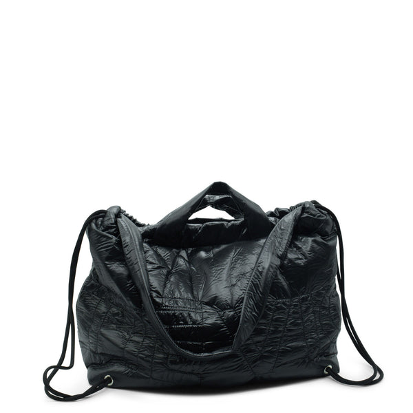 BLACK NYLON BACKPACK BAG WITH LOGO, TONE-ON-TONE VIC MATIÉ EMBROIDERY. CAN ALSO BE WORN AS A BACKPACK THANKS TO SPECIFIC SHOULDER STRAPS, FOLDABLE INTO THE INNER POCKET, IDEAL FOR TRAVEL.